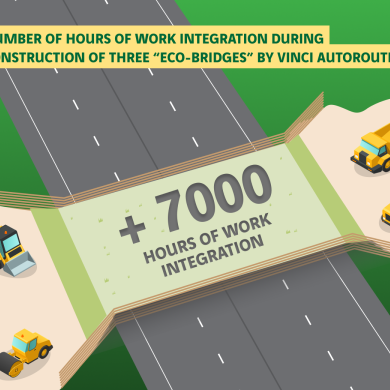 A construction project can also be a social integration “platform” for those estranged from the job market, be they young people without qualifications, people with disabilities or the long-term unemployed. For example, the construction (managed by VINCI Autoroutes) of three “eco-bridges” on the A10 motorway at Vellèches, the A11 motorway at Authon-du-Perche and the A71 motorway at Vierzon included more than 7,000 hours of work integration, offering many people the chance to reconnect with the world of work