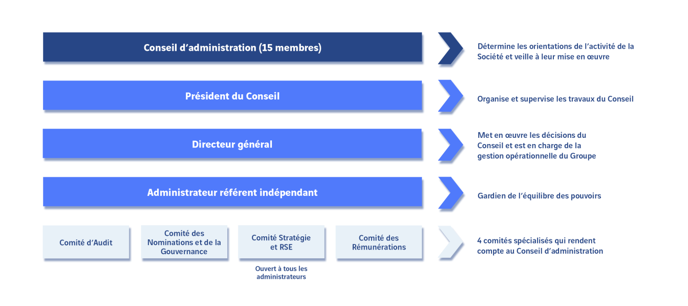 Les attributions respectives des organes de gouvernance sont précisées dans le règlement intérieur du Conseil d'administration.