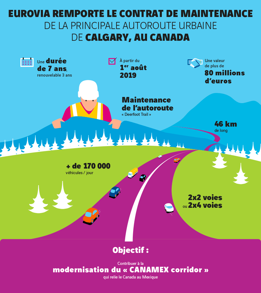 D’une valeur globale supérieure à 80 millions d’euros (environ 120 millions de dollars canadiens), ce contrat porte sur la maintenance au quotidien du « Deerfoot Trail ». Il comprend notamment les travaux liés à la viabilité hivernale, la maintenance et l’entretien de l’infrastructure (ponts, chaussées, assainissement), des équipements (glissières, signalisation, éclairage) ainsi que des espaces verts.