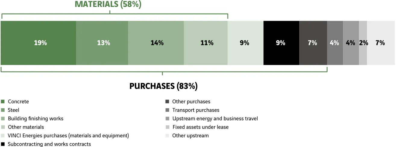 About 83% of upstream emissions, totalling around 16 million tonnes of CO₂ equivalent, come from purchases, primarily construction materials (concrete, steel, bitumen, etc.).