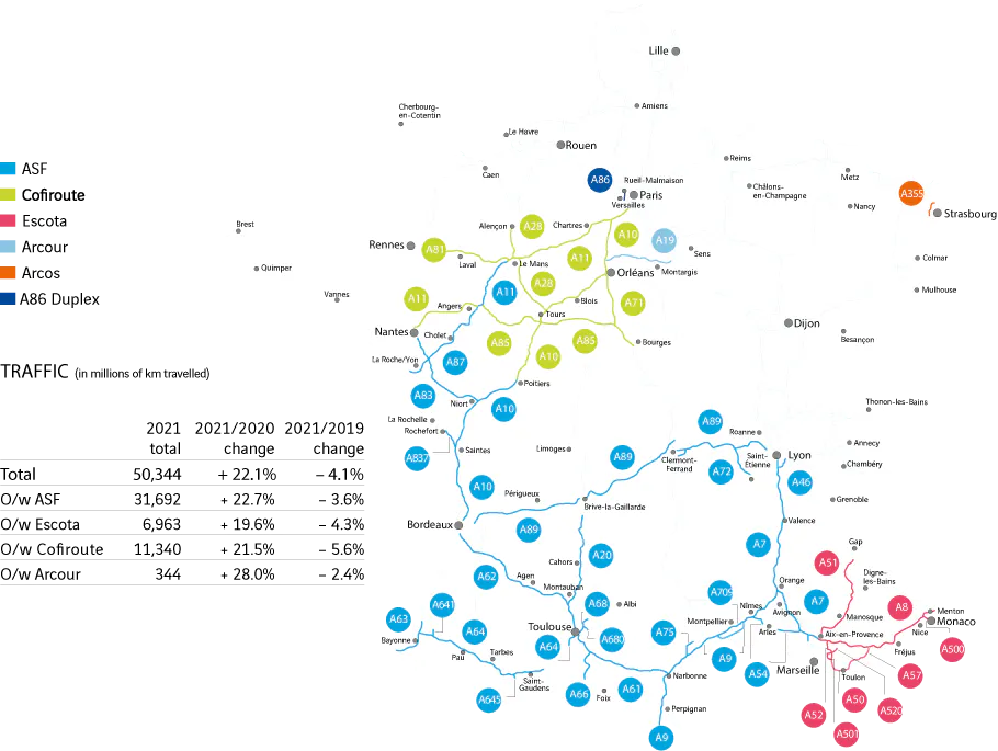 O/w Cofiroute 2021/2020 change + 21.5% |