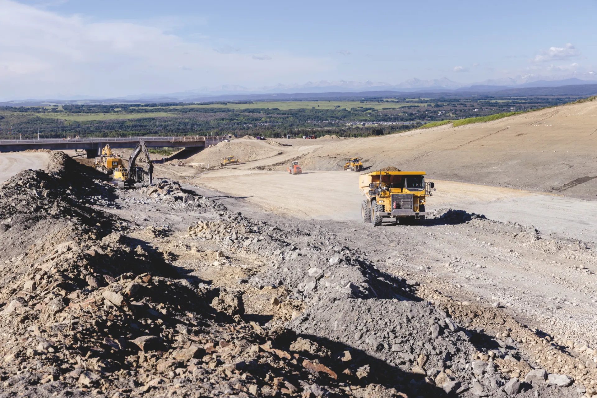 Réalisation des travaux du contournement de Calgary, au Canada. Cette infrastructure routière comprendra quatre échangeurs, sept ponts, ainsi qu’un passage souterrain pour les piétons.