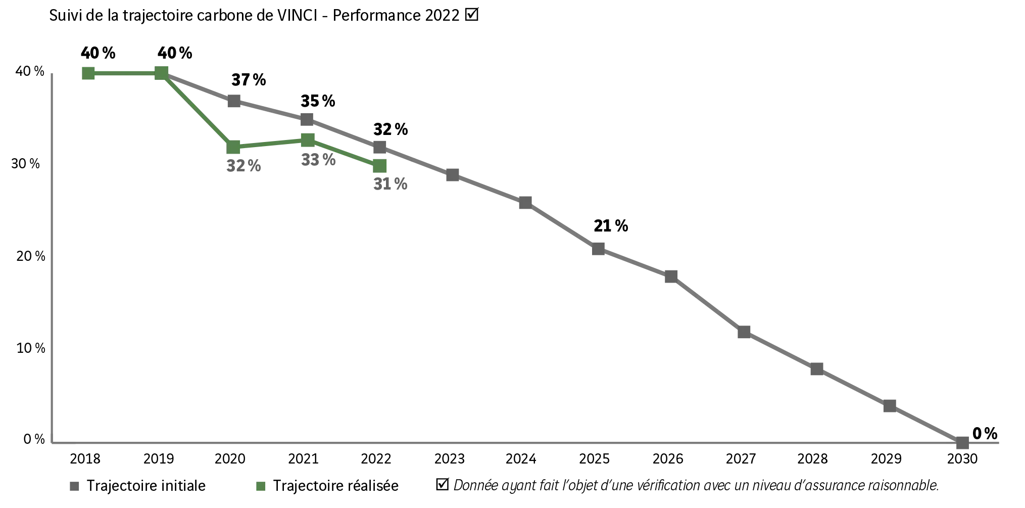 Ce graphique nous montre le suivi de la trajectoire carbone de VINCI - Performance 2022