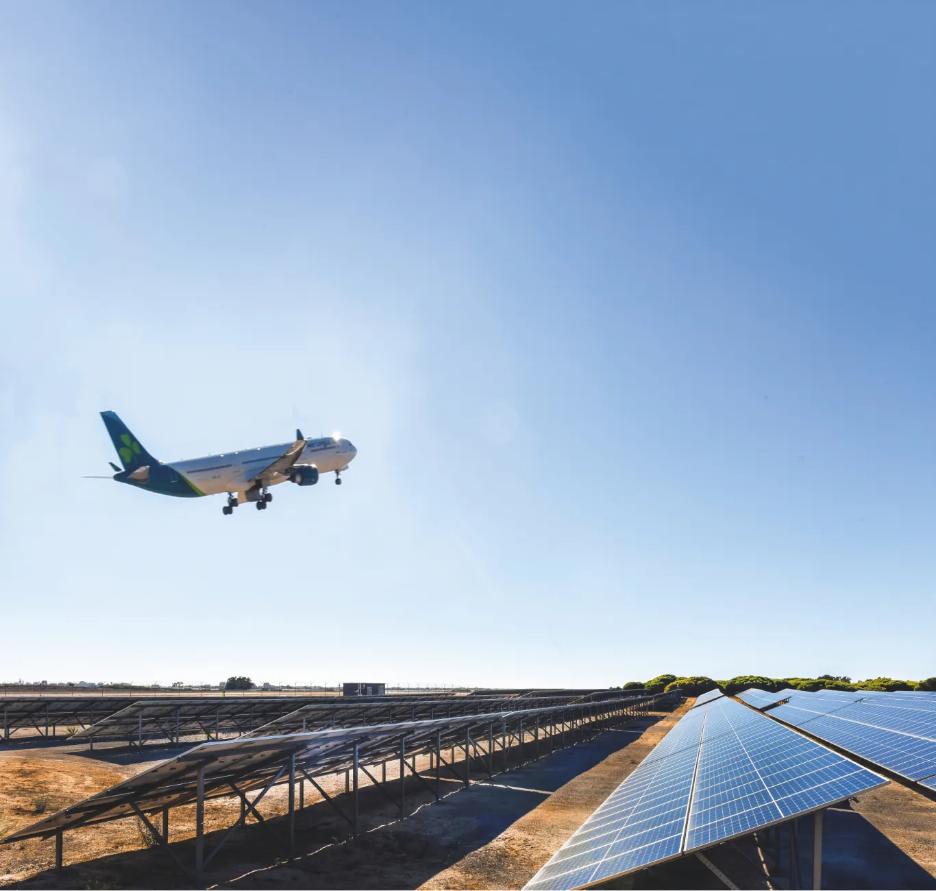 Depuis septembre 2022, l’aéroport de Faro, l’un des dix aéroports portugais gérés par VINCI Airports, est équipé d’une centrale solaire qui garantit son approvisionnement en énergie électrique décarbonée. D’une capacité de 3 MWc, celle-ci fournit 30 % des besoins en électricité de l’aéroport, soit une économie de plus de 1 500 t de CO2 par an. Première centrale solaire aéroportuaire du pays, elle a été financée et développée par SunMind, filiale spécialisée de VINCI Concessions qui assure désormais son exploitation. Les travaux ont été réalisés par Omexom Portugal (VINCI Energies), qui a installé 6 440 panneaux photovoltaïques sur une superficie de 4,7 ha, et connecté ensuite la ferme solaire au réseau électrique interne de l’aéroport.