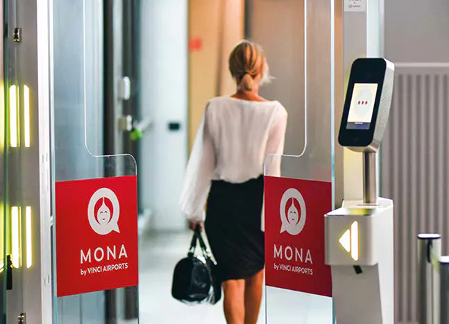 3À l’aéroport Lyon – Saint Exupéry, en France, l’application Mona permet de franchir les contrôles par reconnaissance faciale.