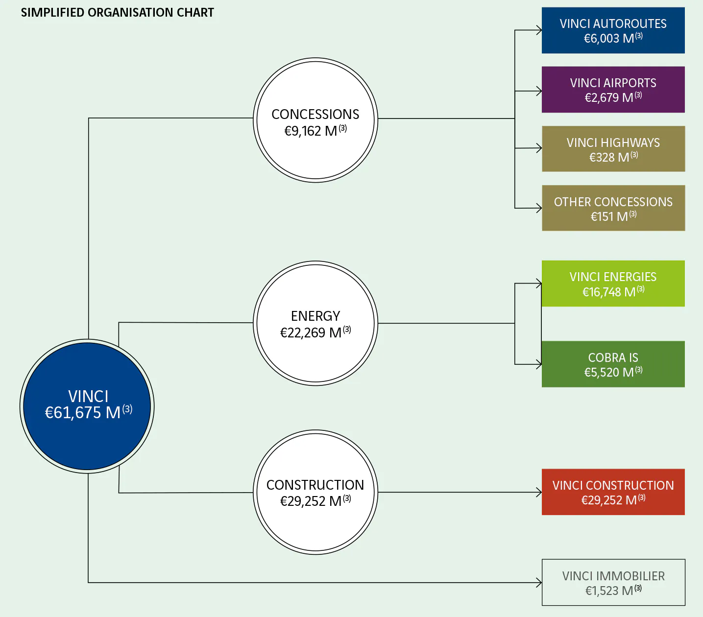 This simplified organization chart shows us VINCI’s revenue at 31 December 2022.