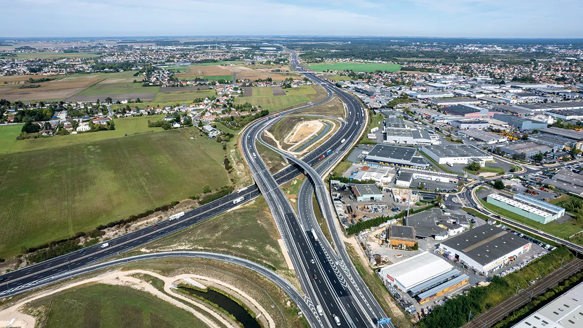 Redesign of the A10/A71 junction north of Orléans, completed as part of the motorway stimulus plan. This project included creating a fourth lane on the A10 in both directions of traffic.