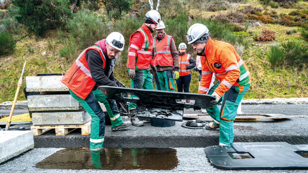Dès le printemps 2025, des prototypes de poids lourds devraient pouvoir, en exclusivité mondiale, se recharger en roulant sur l’autoroute en conditions réelles de circulation. C’est l’objet d’une expérimentation menée sur l’A10, en Île-de-France, par un consortium piloté par VINCI Autoroutes, associé à VINCI Construction et plusieurs acteurs publics et privés, dans le cadre d’un appel à projets de Bpifrance. La technologie de recharge dynamique par induction pourrait améliorer le bilan environnemental de la mobilité électrique lourde en réduisant sensiblement la taille des batteries des poids lourds, tout en éliminant les contraintes d’autonomie. (lire aussi page 51).