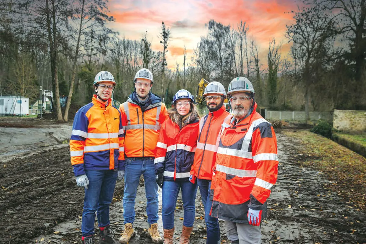 1Partage de bonnes pratiques entre collaboratrices et collaborateurs de la division Réseaux France sur le chantier de Tessancourt-sur-Aubette, en Île-de-France, où les équipes Equo Vivo ont œuvré à la revalorisation de la rivière Aubette de Meulan, devenue par le passé une friche marécageuse, dans le parc communal au cœur du village.