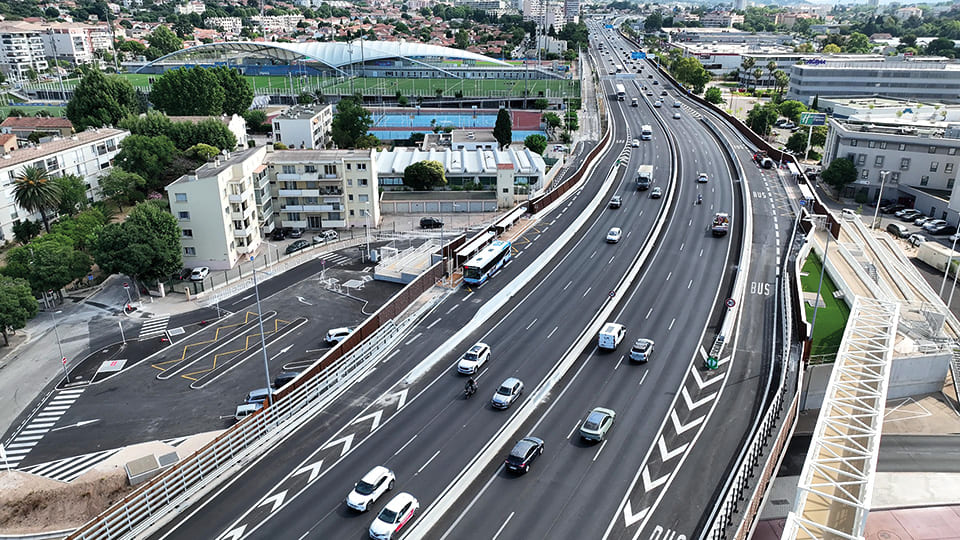 En juin 2025, VINCI Autoroutes a inauguré l’élargissement de l’A57 dans la traversée de Toulon (Var) où des voies réservées aux transports en commun et deux arrêts de bus sur autoroute, directement reliés à un pôle d’échanges multimodal, ont été créés. Cela facilite les mobilités quotidiennes et accélère le développement des transports collectifs et de la multimodalité. La présence de ces arrêts de bus sur autoroute constitue une première en France en milieu urbain et sur le réseau concédé et démontre, une nouvelle fois, la capacité de l’autoroute à accueillir une multiplicité de modes de transport.