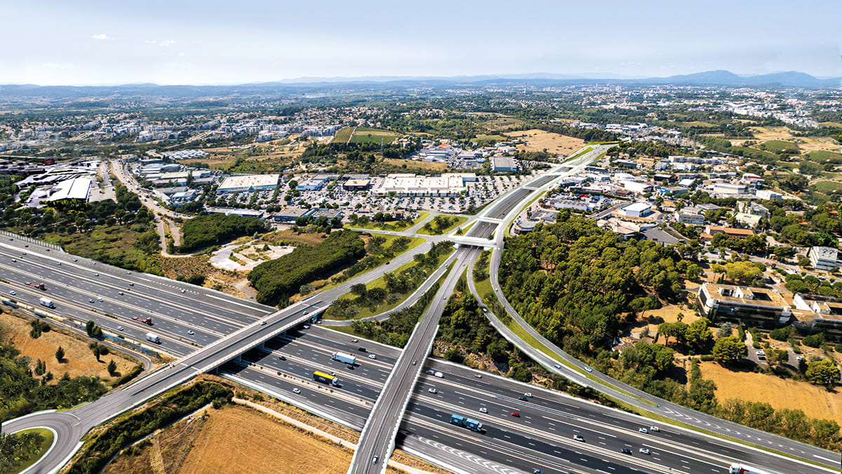 Vue 3D du projet de contournement ouest de Montpellier au niveau du raccordement Sud avec l’A709.