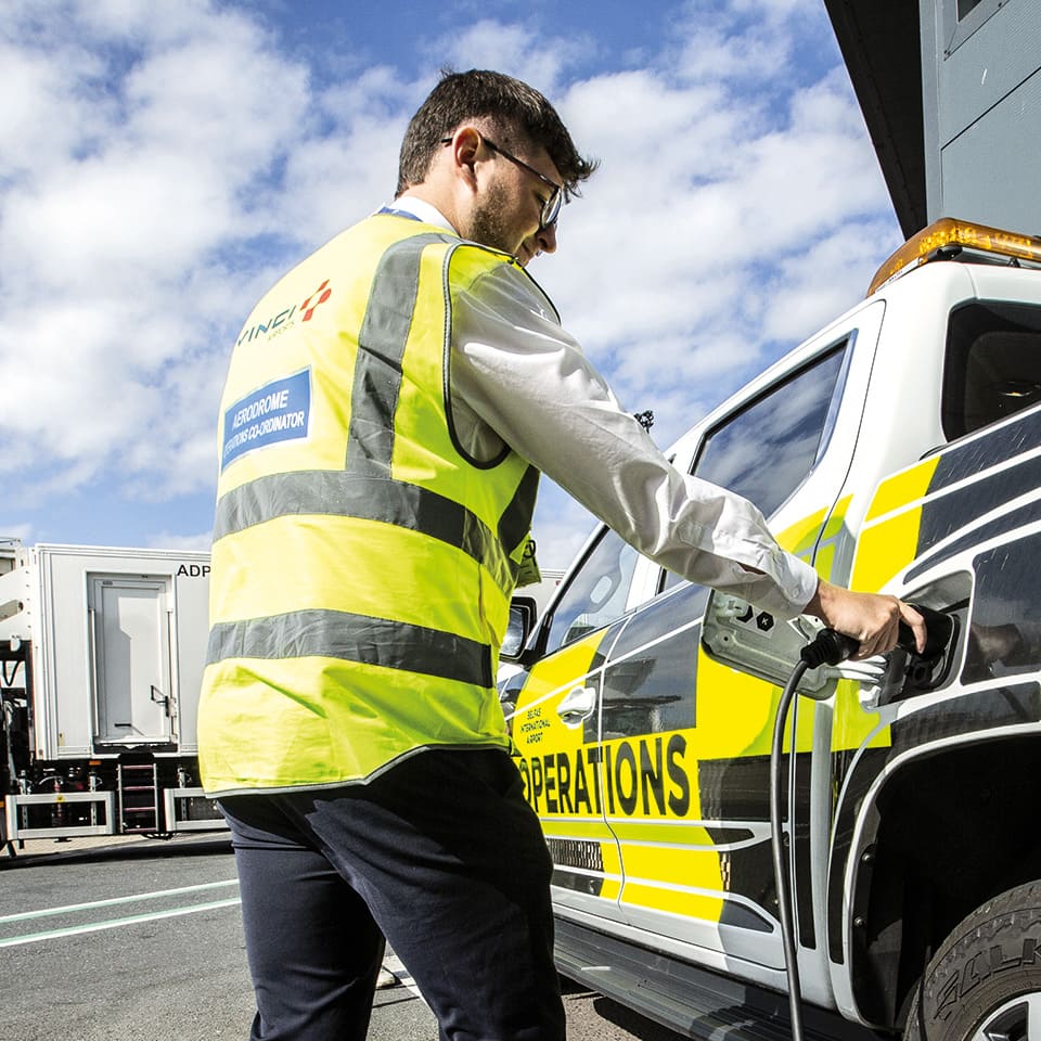 Service vehicles at Belfast airport are now electric-powered.
