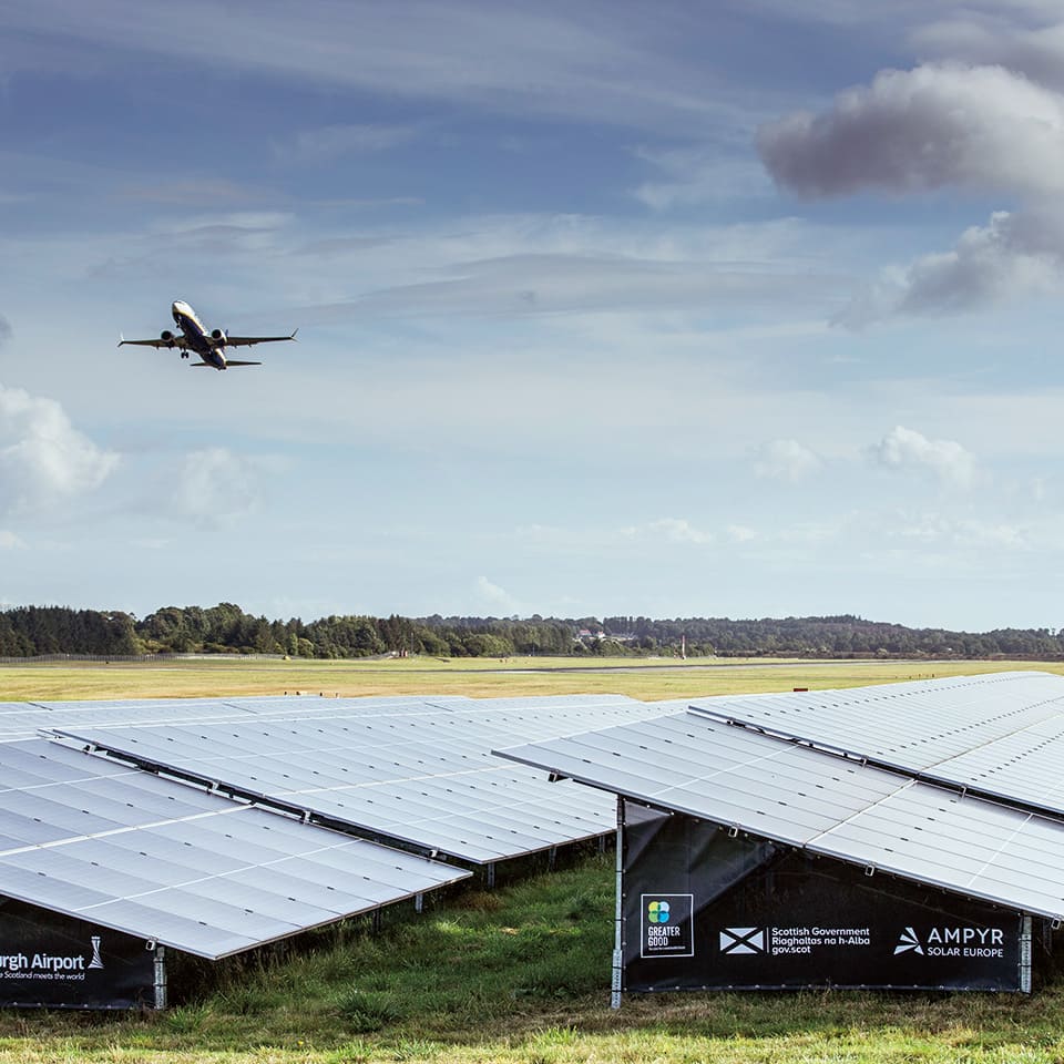 A 9.7 MWp solar farm was brought into service at Edinburgh airport.